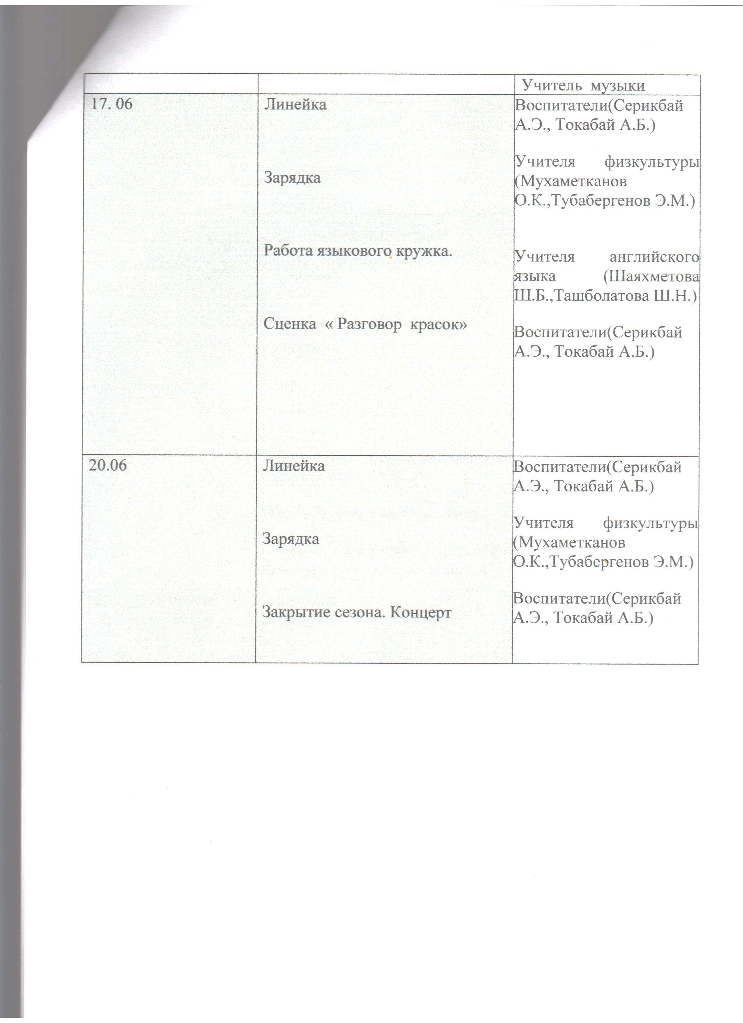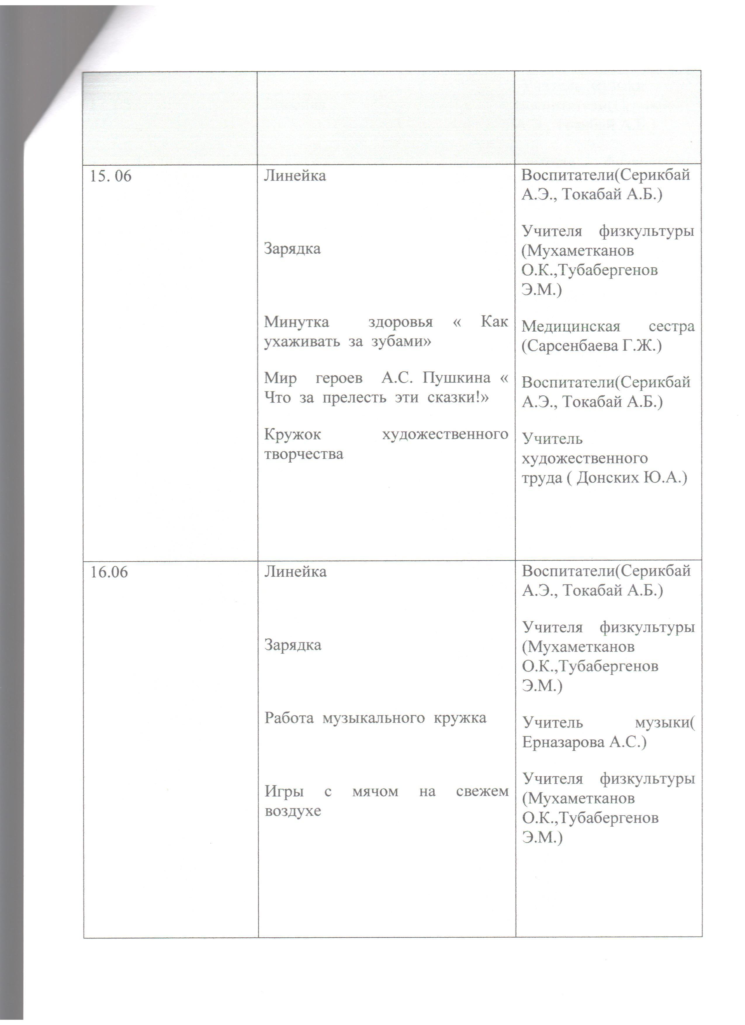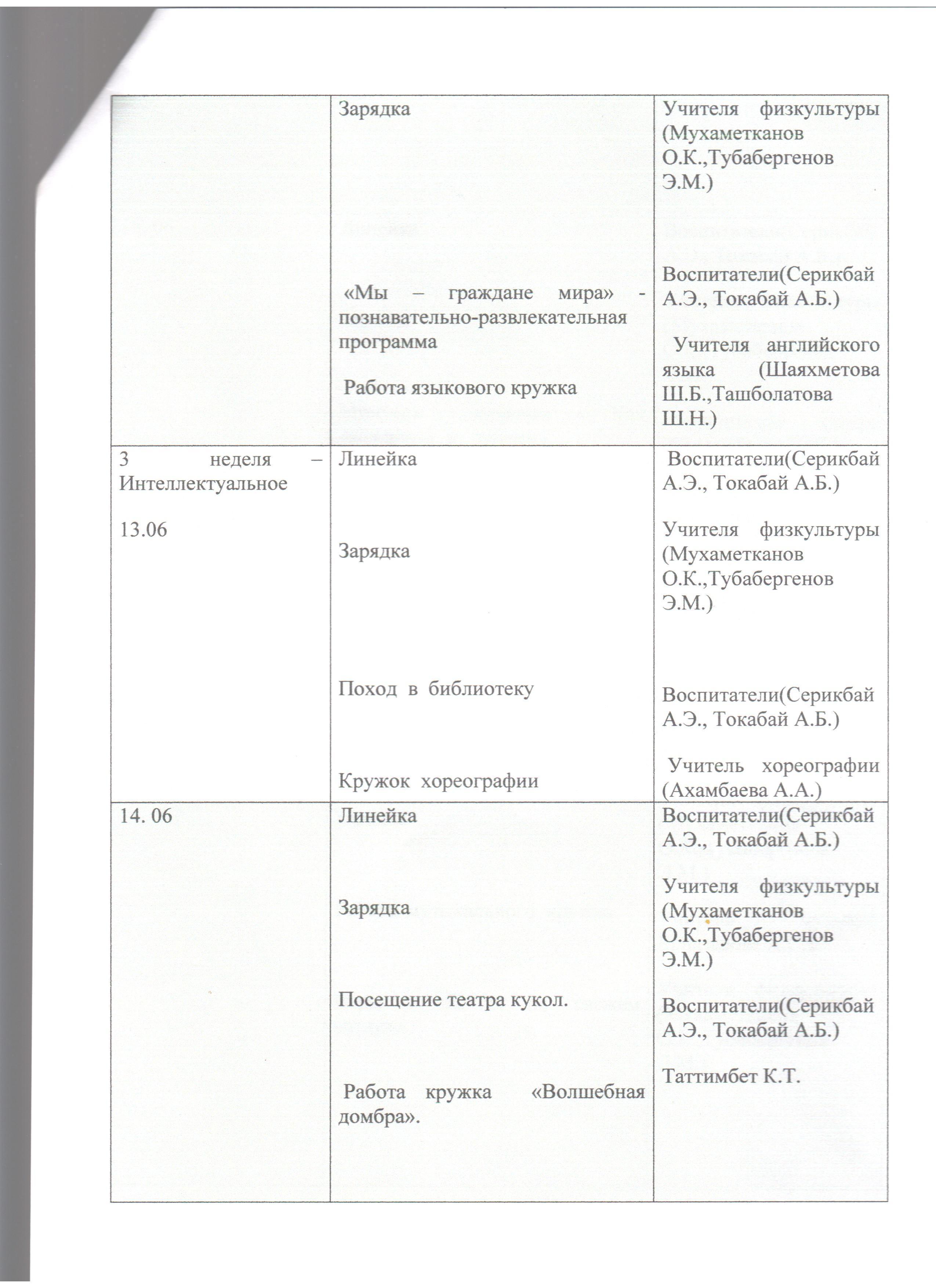 » Мектеп жанындағы "Солнышко" лагерінің жұмыс жоспары