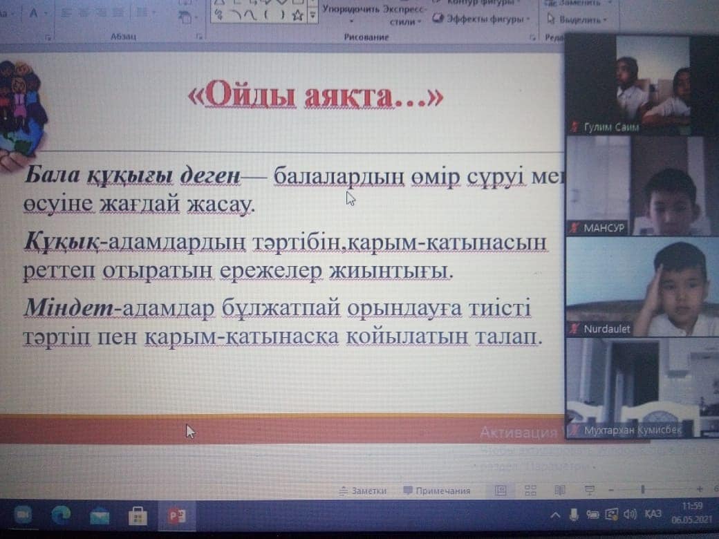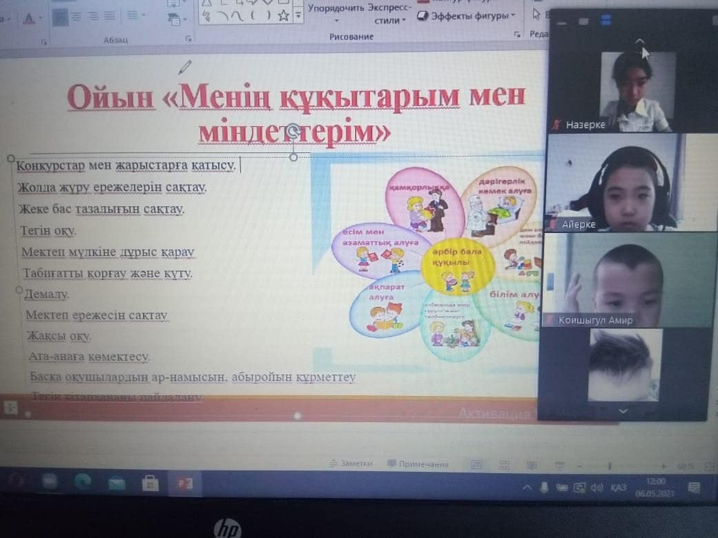№23 мектеп-гимназиясының құқық бұзушылықтың алдын алуға бағытталған жоспарына сәйкес, 06.05.2021 жылы 2ә,3ә,4ә сынып жетекшілерінің ұйымдастыруымен "Менің құқықтарым мен міндеттерім" тақырыбында онлайн форматында іс-шаралар өткізілді.