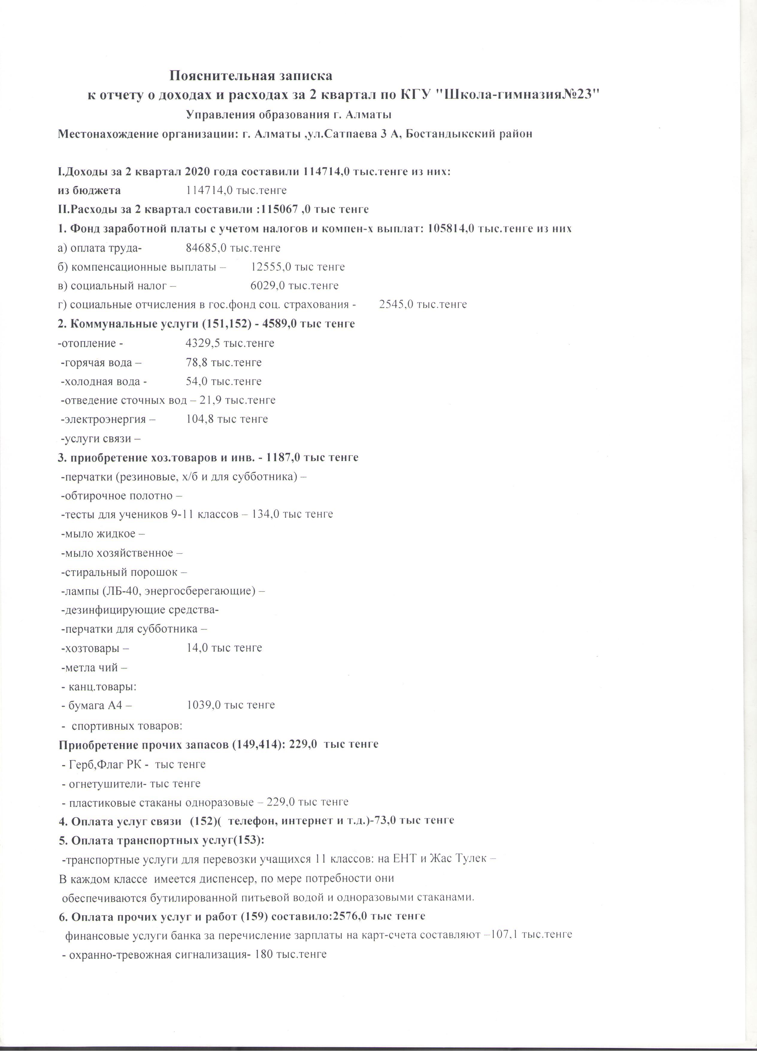 » Отчет о доходах и расходах за 2 квартал 2020 года