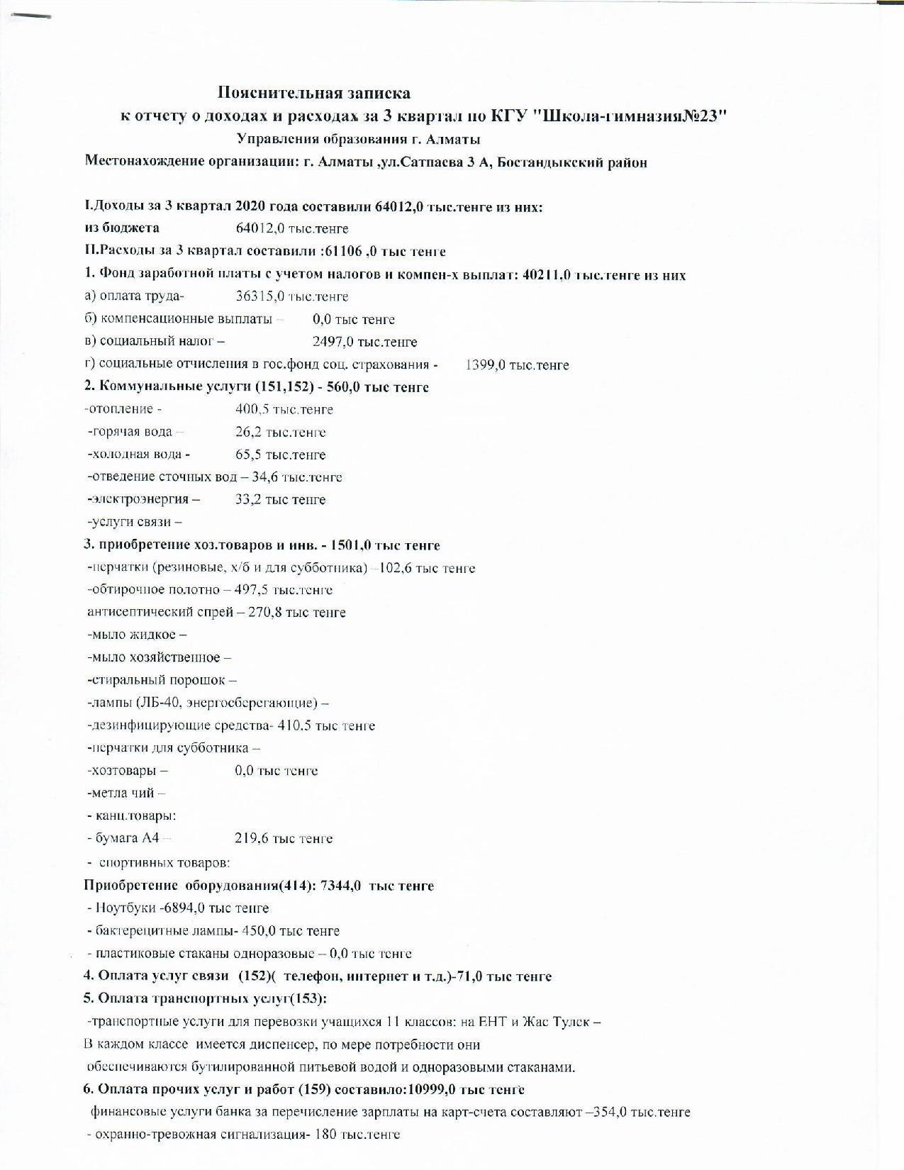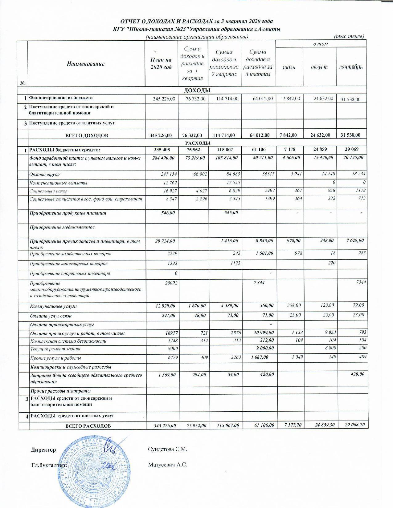 » Отчет о доходах и расходах за 3 квартал 2020 года