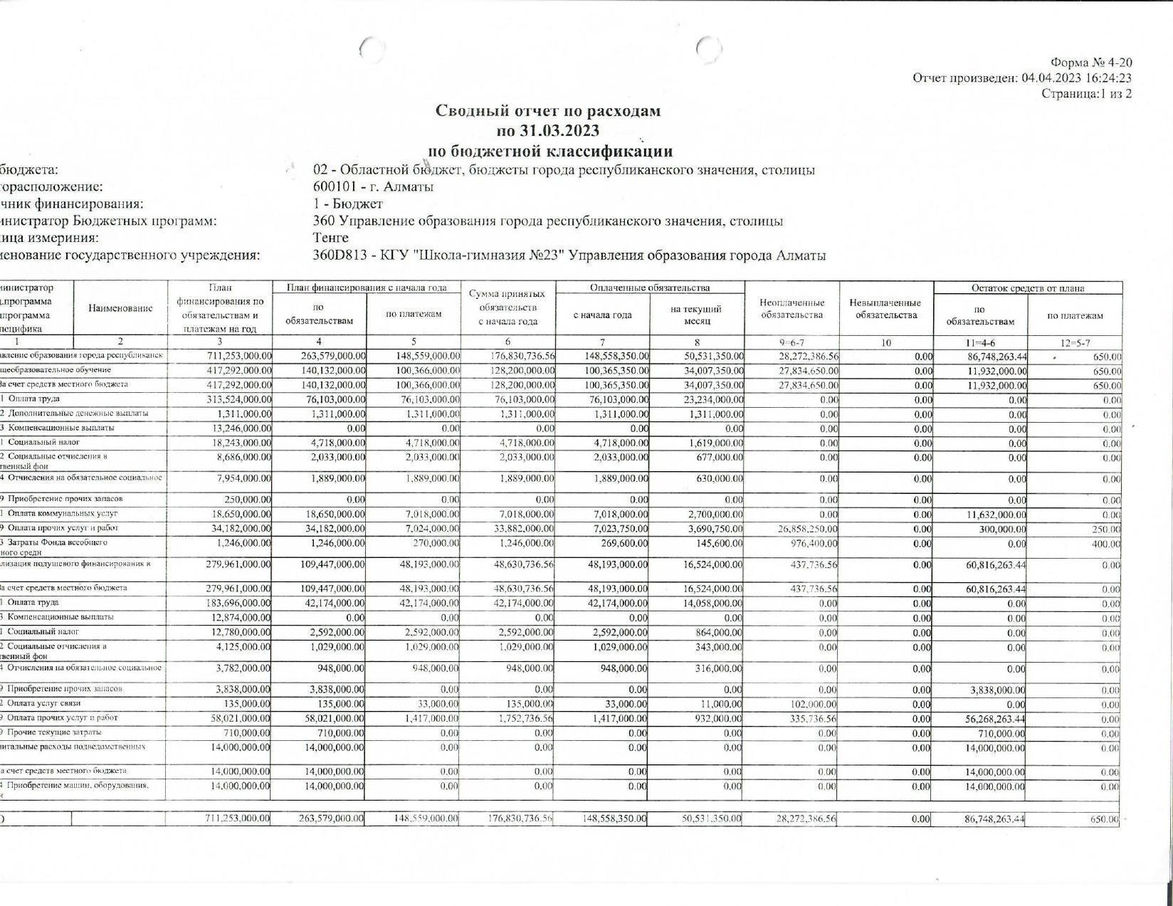КГУ «Школа-гимназия №23» Управления образования города Алматы