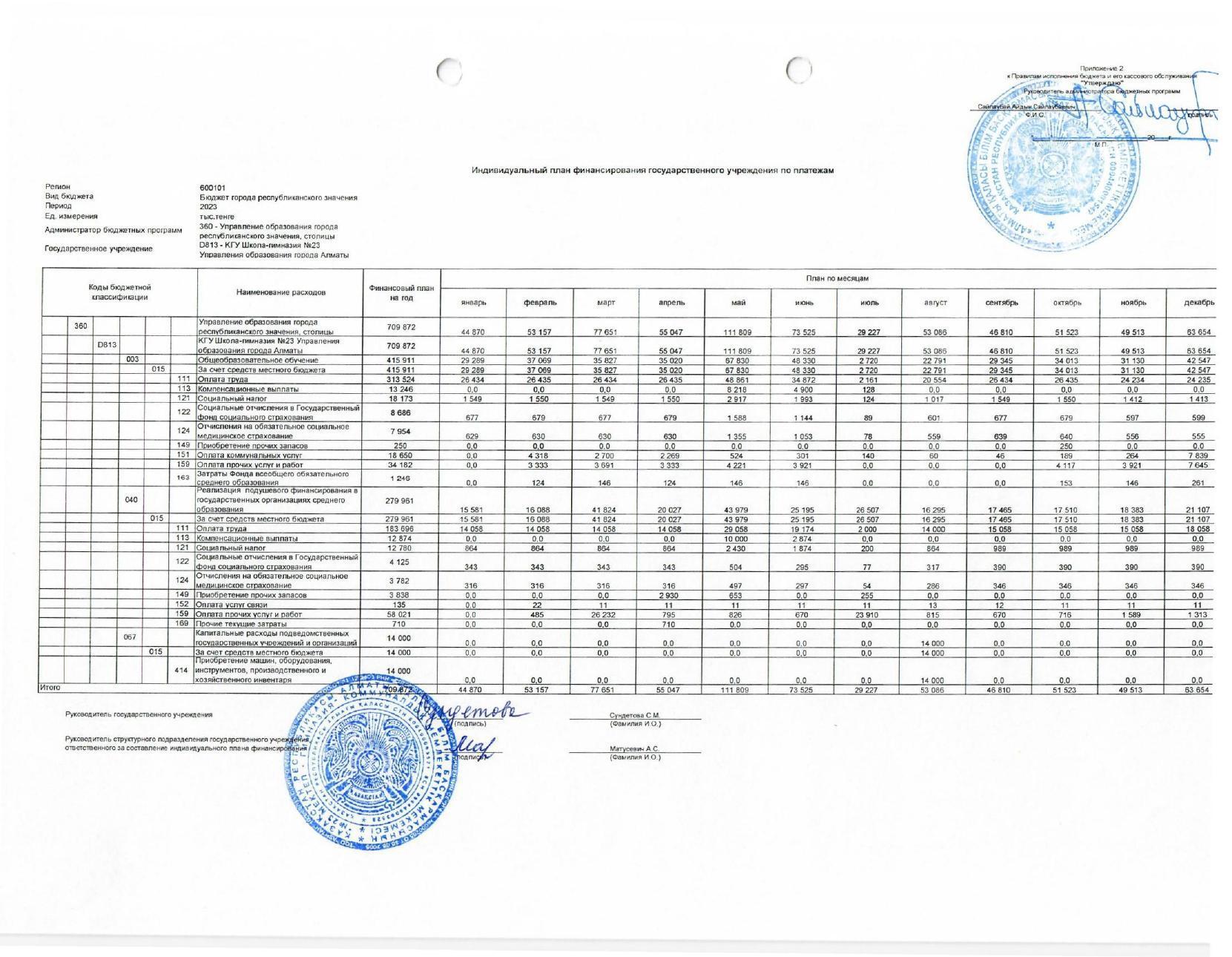 09 маусым 2023 0 1 2 3 4 5 Индивидуальный план финансирования государственного учреждения по платежам