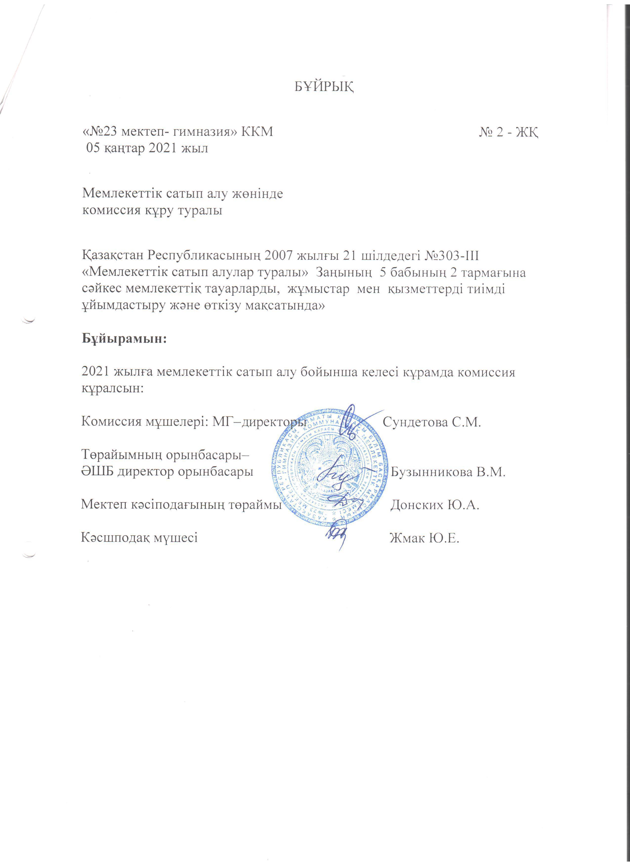 05 қаңтар 2021 0 1 2 3 4 5 Мемлекеттік сатып алу комиссиясын құру туралы/О создании комиссии по государаственным закупкам от 5 января 2021 года