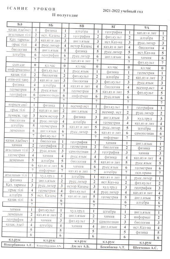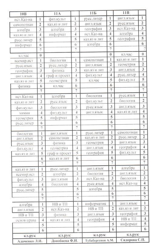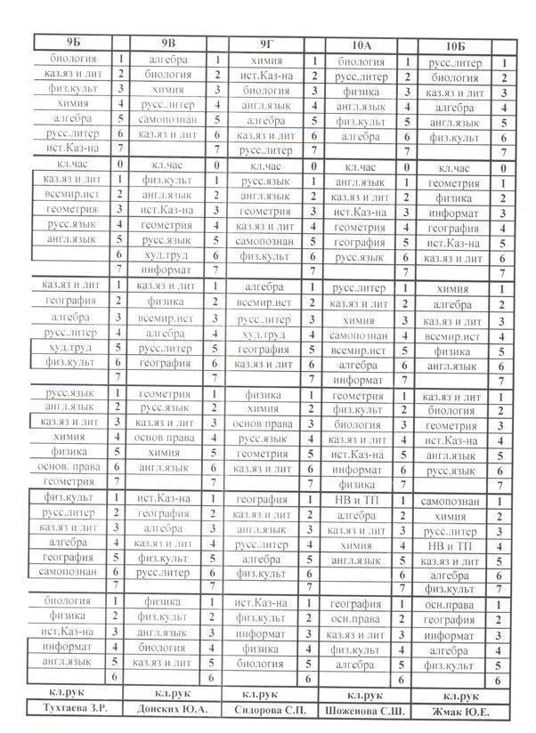 2019- 2020 оқу жылына арналған сабақ кестесі